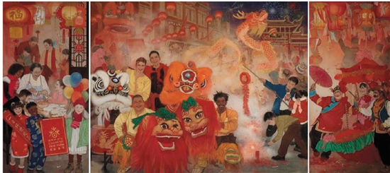 何家英、张见、李玉旺、何梦琼、李朋帮、李浩、李丹、周涛 欢乐春节 240×540cm 中国画 2021年