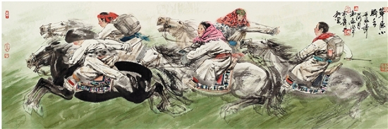 冯远 草原小骑手 34×101.5cm 中国画 2017年