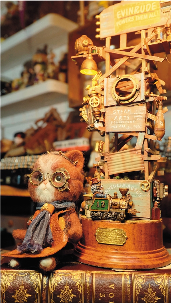 项哲青、项薪颖合作的玩偶装置作品 蒸汽朋克猫迈克