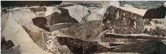 顾黎明 枯山水 395×146cm 布上宣纸油彩及丙烯等