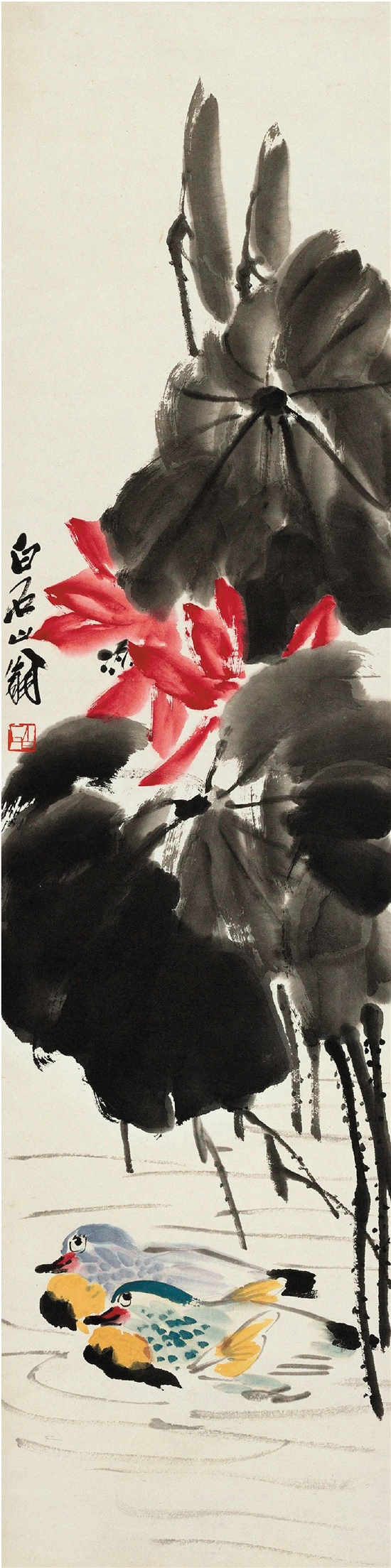 齐白石 荷花鸳鸯 84.5×55cm 纸本设色 无年款