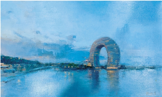 杨铁军 太湖月亮湾的美丽傍晚 30×50cm 油画