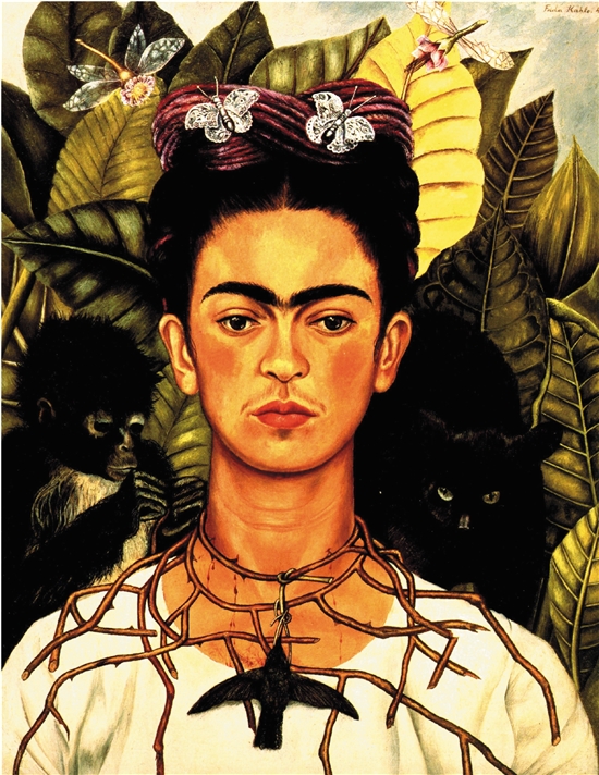◀弗里达 戴荆棘蜂鸟项链的自画像