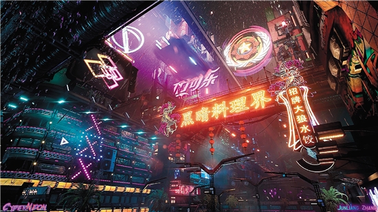 2019年,因为《赛博朋克:霓虹中国》,张君亮走入了公众的视野。这是一部用当今世界流行的美术风格,营造一个未来科技下凸显中国风格的赛博朋克世界的游戏场景作品。