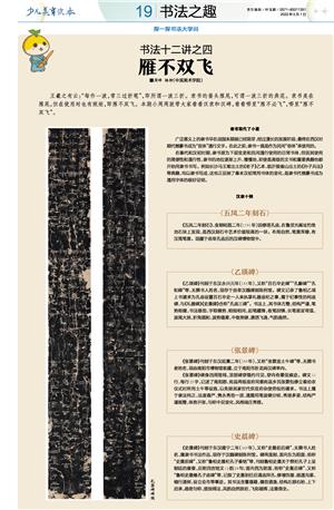 王羲之有云:“每作一波,常三过折笔”,即所谓一波三折。隶书的蚕头雁尾,可谓一波三折的典范。隶书美在雁尾,但在使用时也有规矩,即雁不双飞。本期小周周就带大家看看汉隶和汉碑,看看哪里“雁不必飞”,哪里“雁不双飞”。