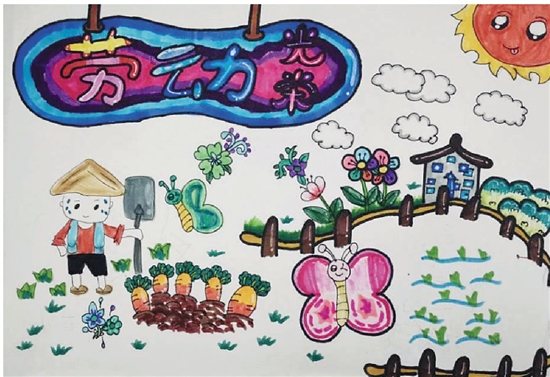 作品运用了许多体现劳动最光荣的元素体现主题,很有亲切感。