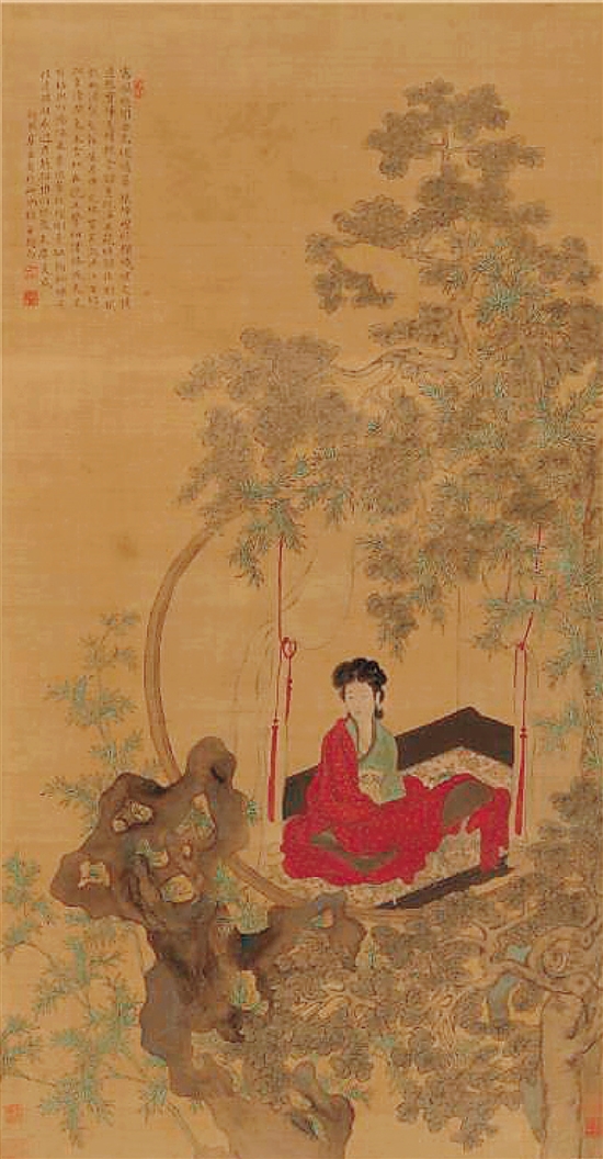 ◀华嵒 抱瑟侍女 117×60cm 绢本设色 年代不详