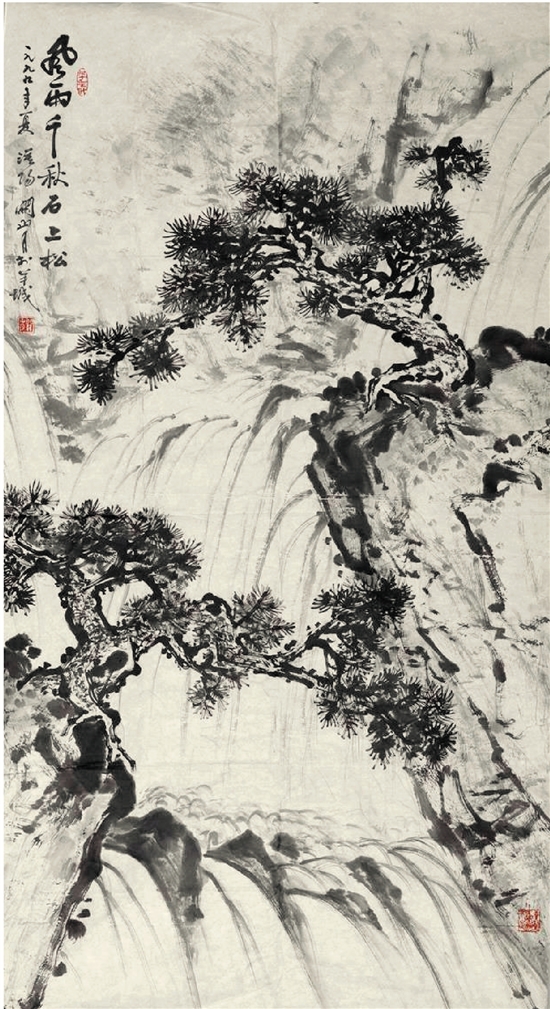关山月 风雨千秋石上松 178.5×96cm 1999年