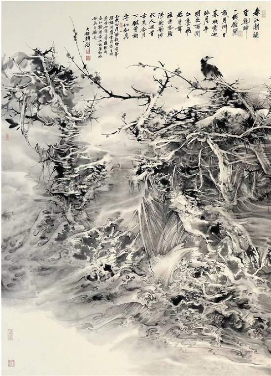 韩璐 春江潮涌 145×200cm 纸本水墨 2019年