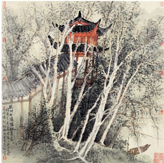 曾先国 杭州西溪湿地长廊 50×50cm 中国画