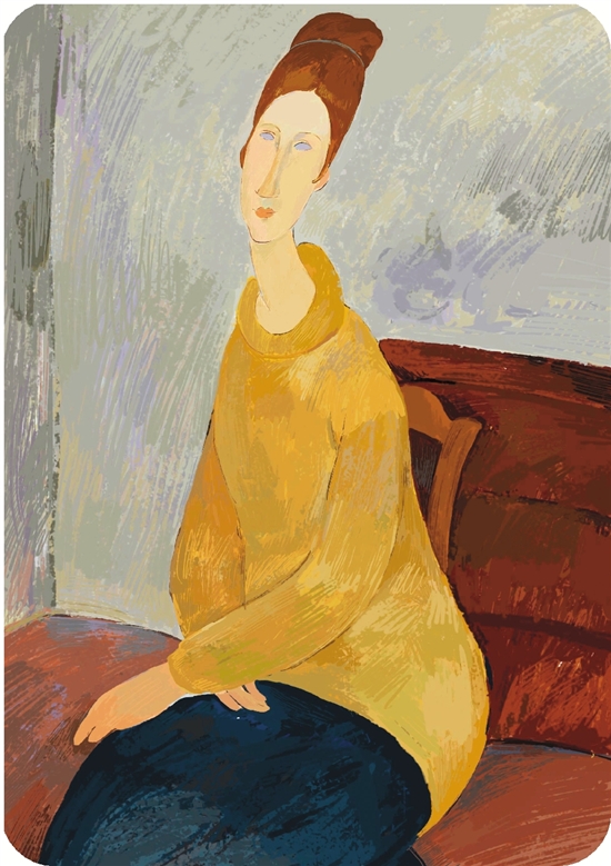 ❸我们在临绘莫迪里阿尼人物画的时候,需要在人物形象上多费功夫。在过程3中,我对于人物的塑造进行了深一步的刻画,这不是对背景的暂放与舍弃,对于画面的刻画依然需要人物与背景同时关照进行。