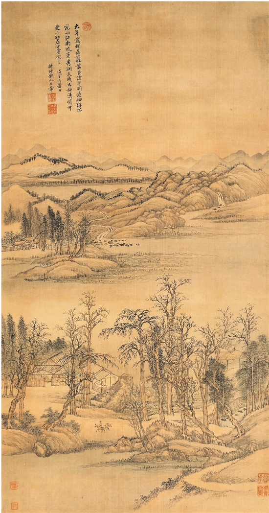 清 王翚 仿六如居士山水 87.5×46cm 绢本设色