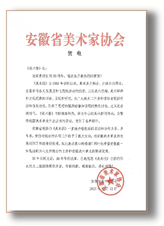安徽省美协贺信