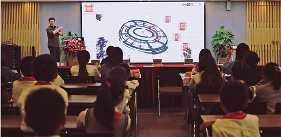 西泠印社吕易为上海尚阳外国语学校桐乡实验学校的孩子带来《亚运中的西泠元素》讲座