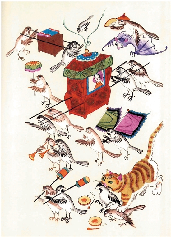 麻雀娶亲 绵竹年画 陈兴才印绘