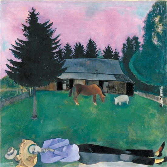 马克·夏加尔 横卧的诗人 布面油画 1915年 伦敦泰特现代艺术馆藏