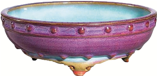 明 钧窑葡萄紫釉鼓钉三足水仙盆