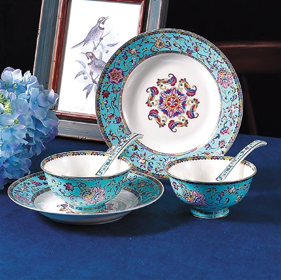 景德镇陶瓷碗碟珐琅彩餐具 工艺:釉上彩