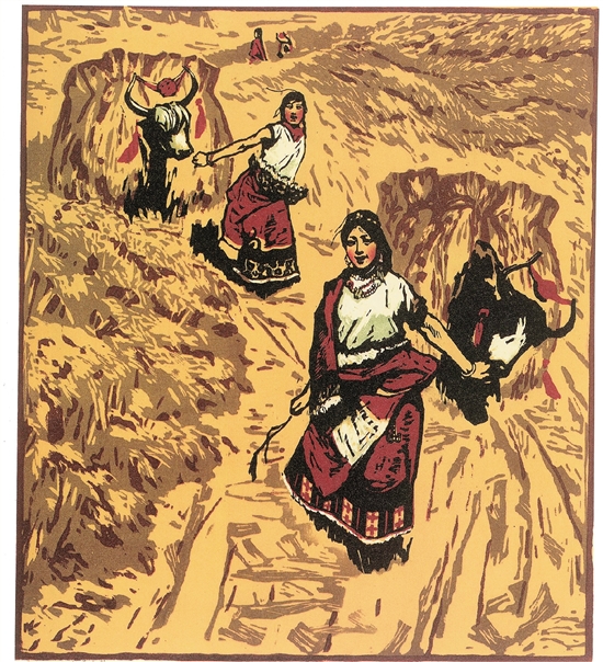 李焕民 初踏黄金路 55×49cm 套色木板 1953年