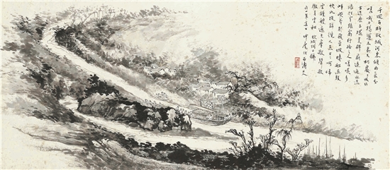顾坤伯 仿石涛山水 30.5×69.5cm 1961年