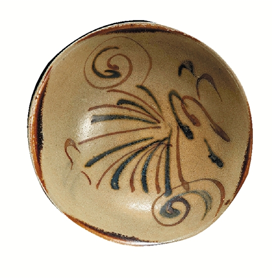 唐 长沙窑青釉褐彩云气纹瓷盏
