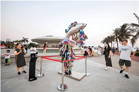 2023年海口城市雕塑艺术节在海口云洞图书馆外场举行,为市民游客带来更加多元化的艺术体验。 新华社记者 张丽芸 摄