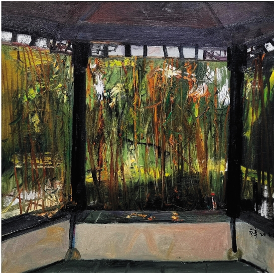杨参军 小莲庄读书亭 100×100cm 布面油画 2024年