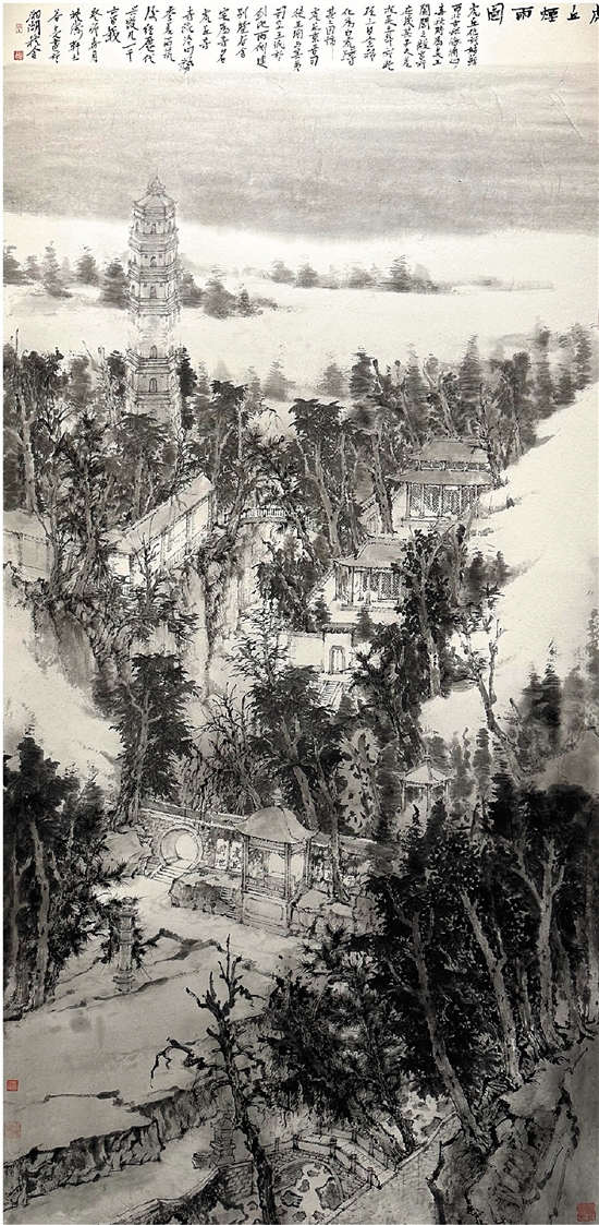 张谷旻 虎丘烟雨图 244×124cm 2023年