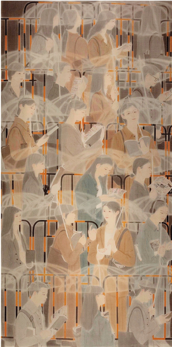 伍俊(中国美术学院硕士) 候考 225×112cm 中国画