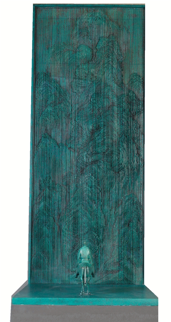 张新宇:作品从侧面看是起伏的山峦,也就是“看山是山”,随着观看角度的变换,会呈现出虚实结合的效果,所谓“看山不是山”;从正面看,则是一幅写意山水画,诠释了“看山还是山”的艺术精神与人生境界。