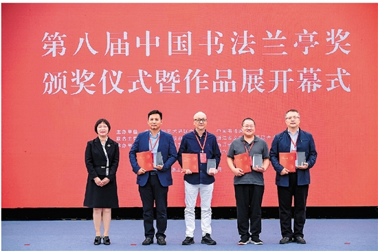 中共绍兴市委副书记、代市长吴登芬为银奖获得者刘宏卫、何来胜、曹有福、程志宏颁奖。