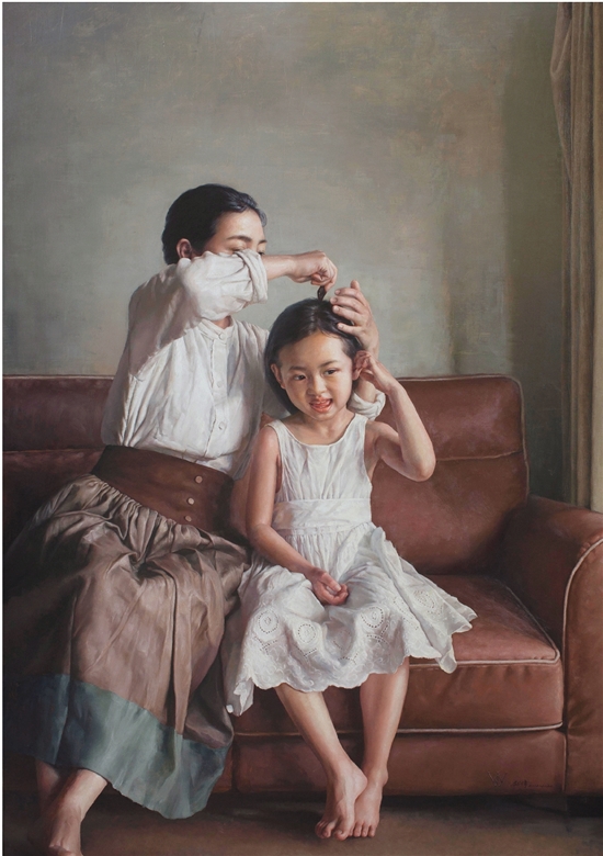 吴剑伟 妈妈的梳子 150×106cm 布面油画