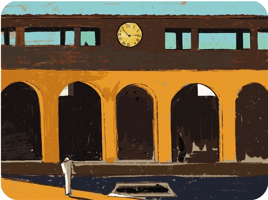 ❸过程3进入深化的调整与绘制,开始关注到建筑物等主体边缘线的关系与描绘。