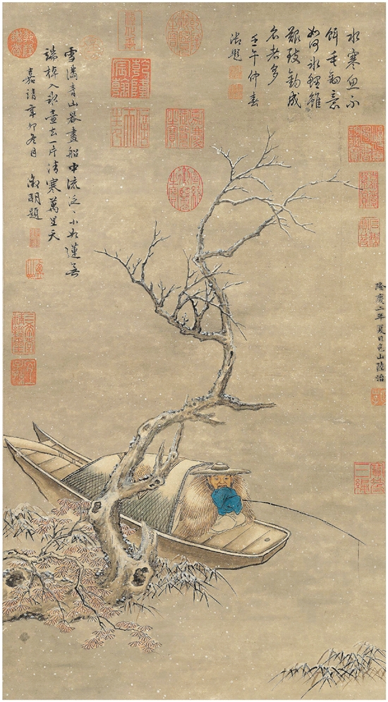 图1 明 陆治 寒江钓艇图 65.7×36.6cm 纸本 立轴 设色 台北故宫博物院藏