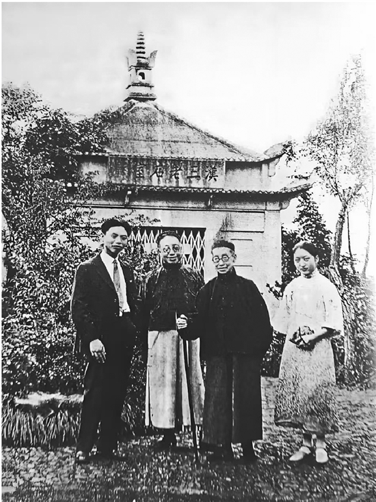 吴昌硕与钱瘦铁等在汉三老石前留影