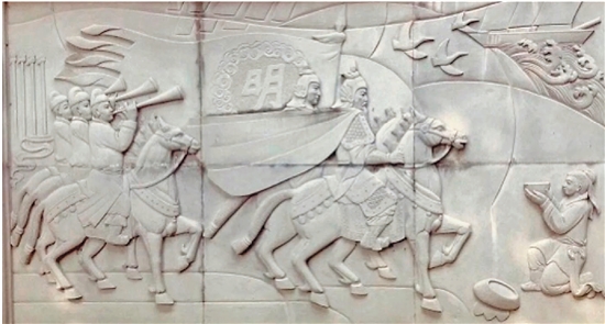 镶嵌在演武公园门廊的浮雕《郑成功收复台湾》