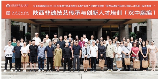 “陕西非遗技艺传承与创新人才研修(汉中藤编)”开班仪式参会人员合影