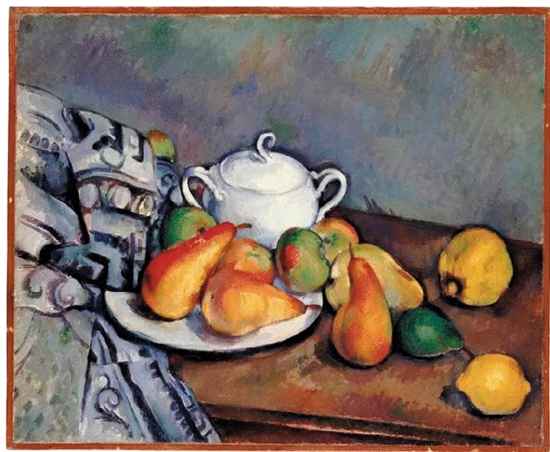 保罗·塞尚 (1839-1906年) 糖缸、梨和桌布1893-1894年 布面油画 POLA美术馆藏