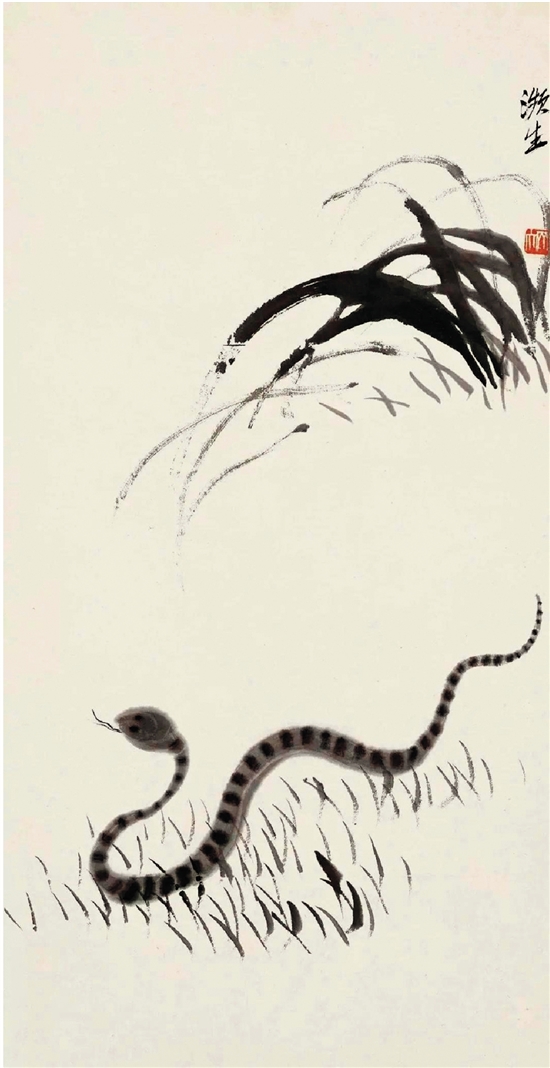 齐白石 十二属图·草蛇图 纸本设色