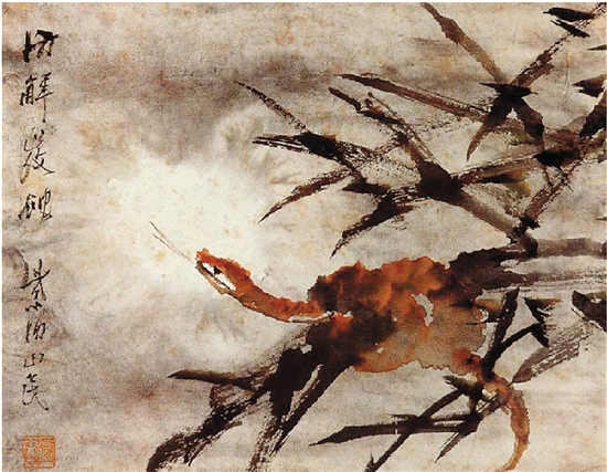 虚谷 花鸟水族·枯枝赤蛇图 24.5×31.5cm