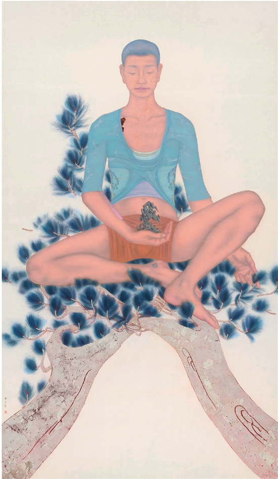 祝铮鸣 独乐 115×198cm 绢本设色 2022年