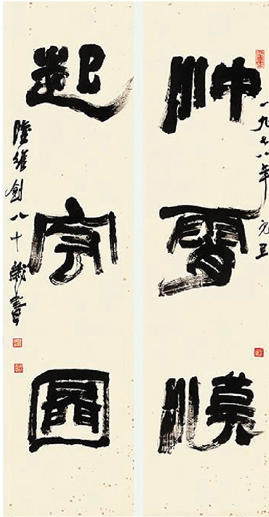 陆维钊 冲霄汉起宏图三言联 140×35cm×2