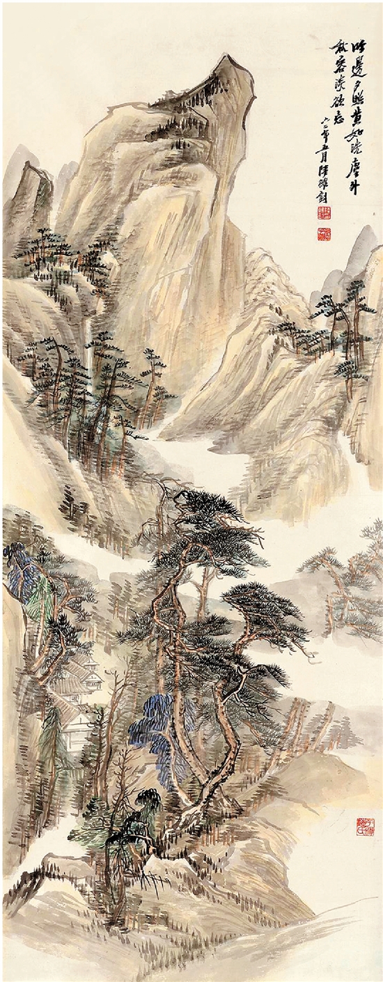 陆维钊 秋山夕照图 纸本 106×42cm 1962年 中国美术馆藏
