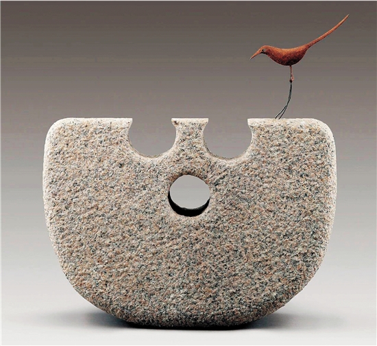 韩美林 石器与小鸟 雕塑(作品选自成都美术馆“美的森林——韩美林艺术展”,详见第8版)