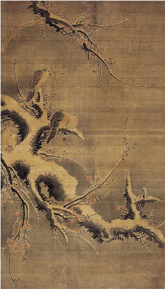 明代 吕纪 红梅斑鸠图 168.6×97cm