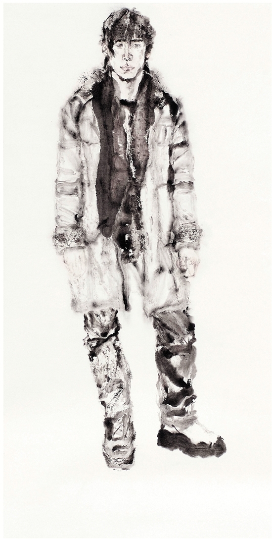 刘艳辉 戴围脖的男子 138×68cm 纸本水墨 2010年