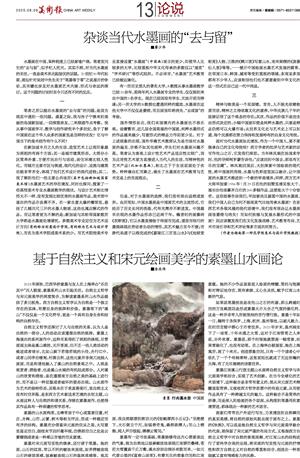 国外情形如此,我们本国境内的水墨画也不容乐观。毋庸赘言,近几届全国美展的中国画,纯粹水墨形式的作品越来越少,写意形式的精品力作则更少见。对于上述现象的出现,国外华裔艺术教师认为是市场对水墨画的偏见、价格不如其他画种,学生们对水墨画兴趣不高。笔者认为客观上设计性艺术产品适应性比较广,因为应用性艺术更为直接进入当代人的生活,而精神性的艺术产品(比如水墨画),相比之下于生活层面处于劣势。种种缘由汇而聚之,催生了水墨画在艺术教育与艺术交易上的负面效应。