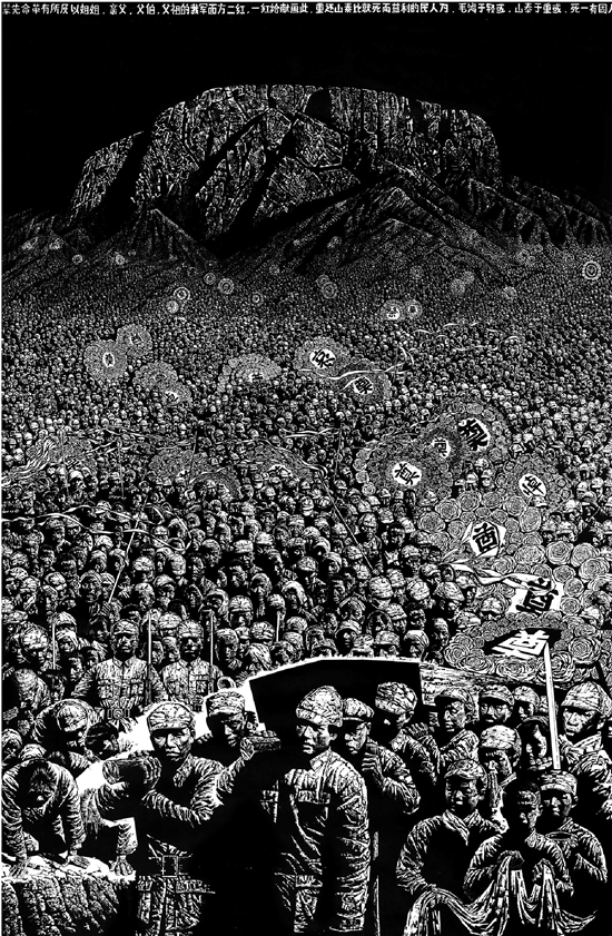 代大权 贺秦岭 重于泰山 450×310cm 黑白木刻 2012年
