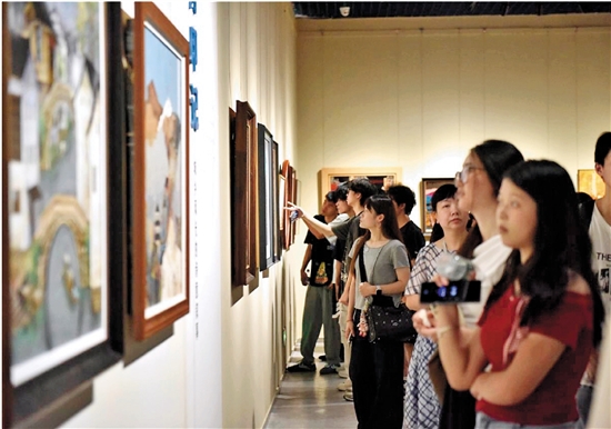 观众正在展厅观看展出作品