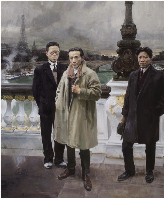 何红舟 桥上的风景 235×195cm 布面油画